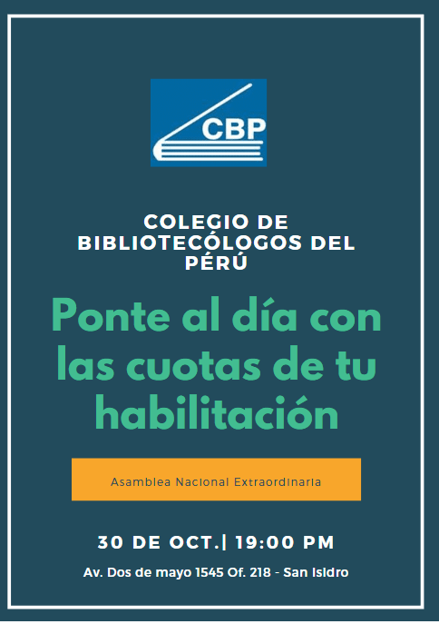 El Colegio de Bibliotecólogos del Perú insta a los colegiados que se pongan al día con la habilitación, de ser necesario firmar una carta de compromiso, y saldar la cuenta del presente año.